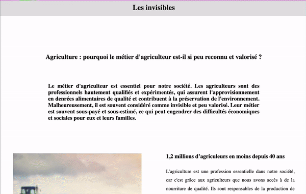 La création de ce site m'a permis de m'immerger dans le rôle d'un journaliste et d'apprendre à effectuer des recherches sourcées et documentées afin de retranscrire la réalité de manière fiable. Cet exercice m'a offert l'opportunité d'acquérir des compétences en matière de collecte d'informations crédibles et de les présenter de manière claire et précise. Grâce à cette expérience, j'ai pu développer ma capacité à communiquer de manière objective et informative.