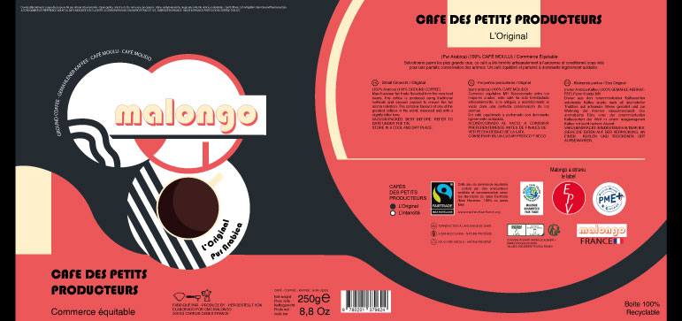 Dans mon projet de création d'une nouvelle étiquette pour une boîte de conserve de café de la marque Malengo, j'ai appliqué ma compétence en création et déclinaison d'identité visuelle dans le style imposé du Bauhaus. J'ai utilisé des formes géométriques simples, des couleurs primaires vives et des typographies minimalistes pour créer une étiquette cohérente avec le su.